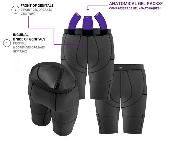 BRFZY Recovery Boxer Briefsreplaceyour underwear. They’re designed for direct contact with your skin so the Anatomical Gel Packs stay securely in place for optimal temperature transfer and comfort.